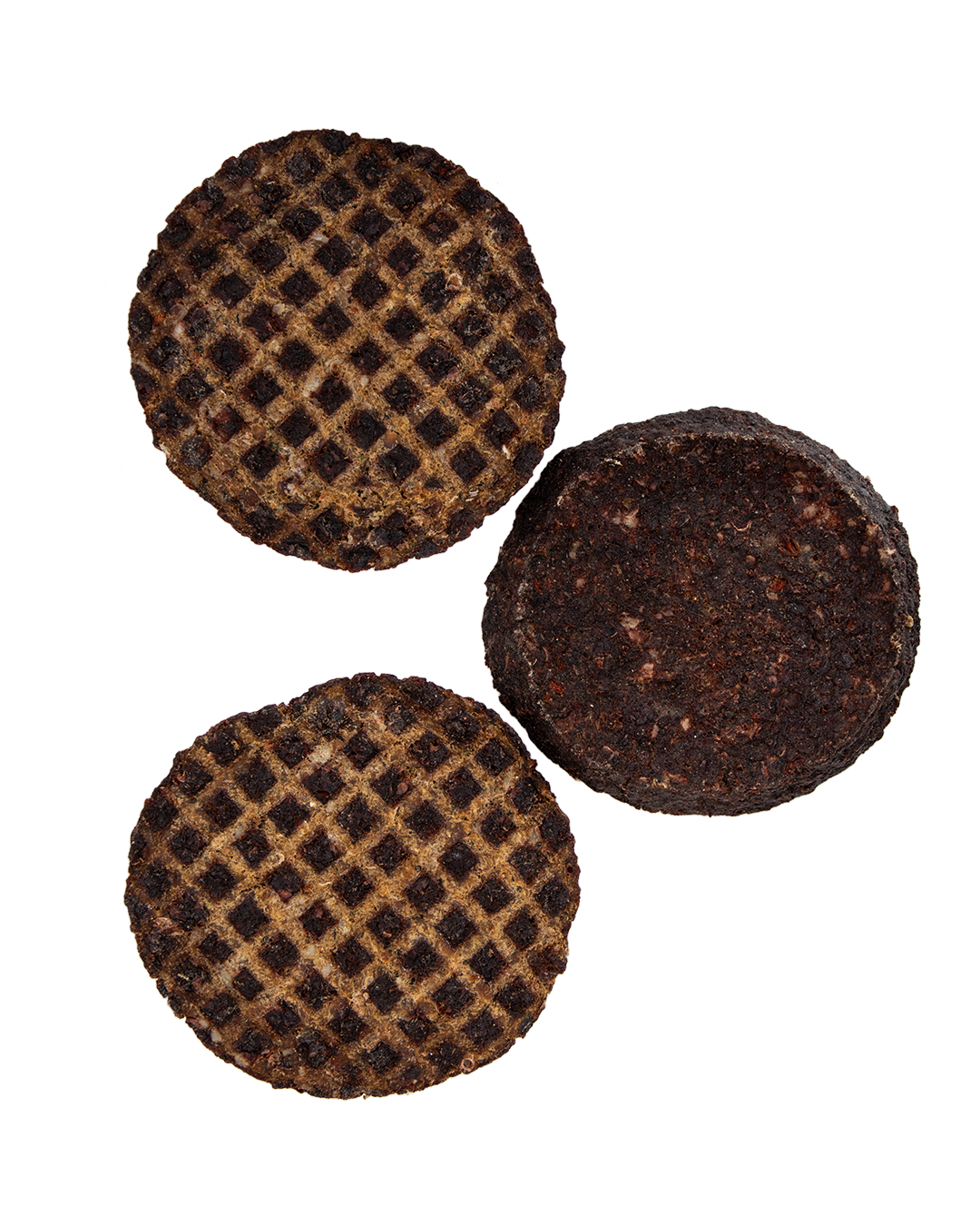 Our gently low temperature dehydrated raw food aim to preserve nutritional integrity and natural flavour: our “burgers” offer the benefits of raw feeding with greater convenience. They can be served on their own, rehydrated, added to bowls of raw or gently cooked food to provide textural variations, or used as functional treats. They are ideal for active pet lovers who love to camp, cottage or travel but never leave their best friends behind.